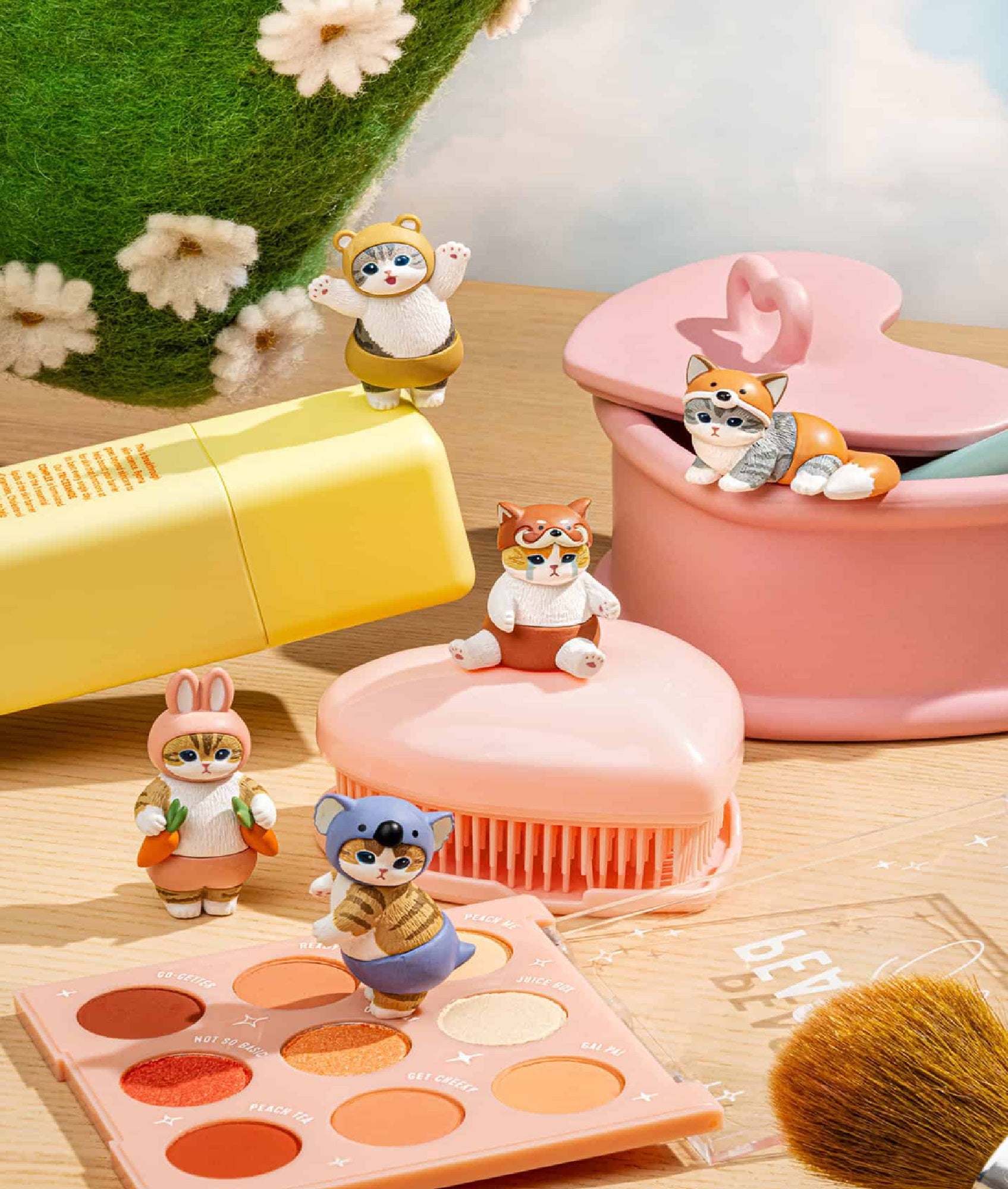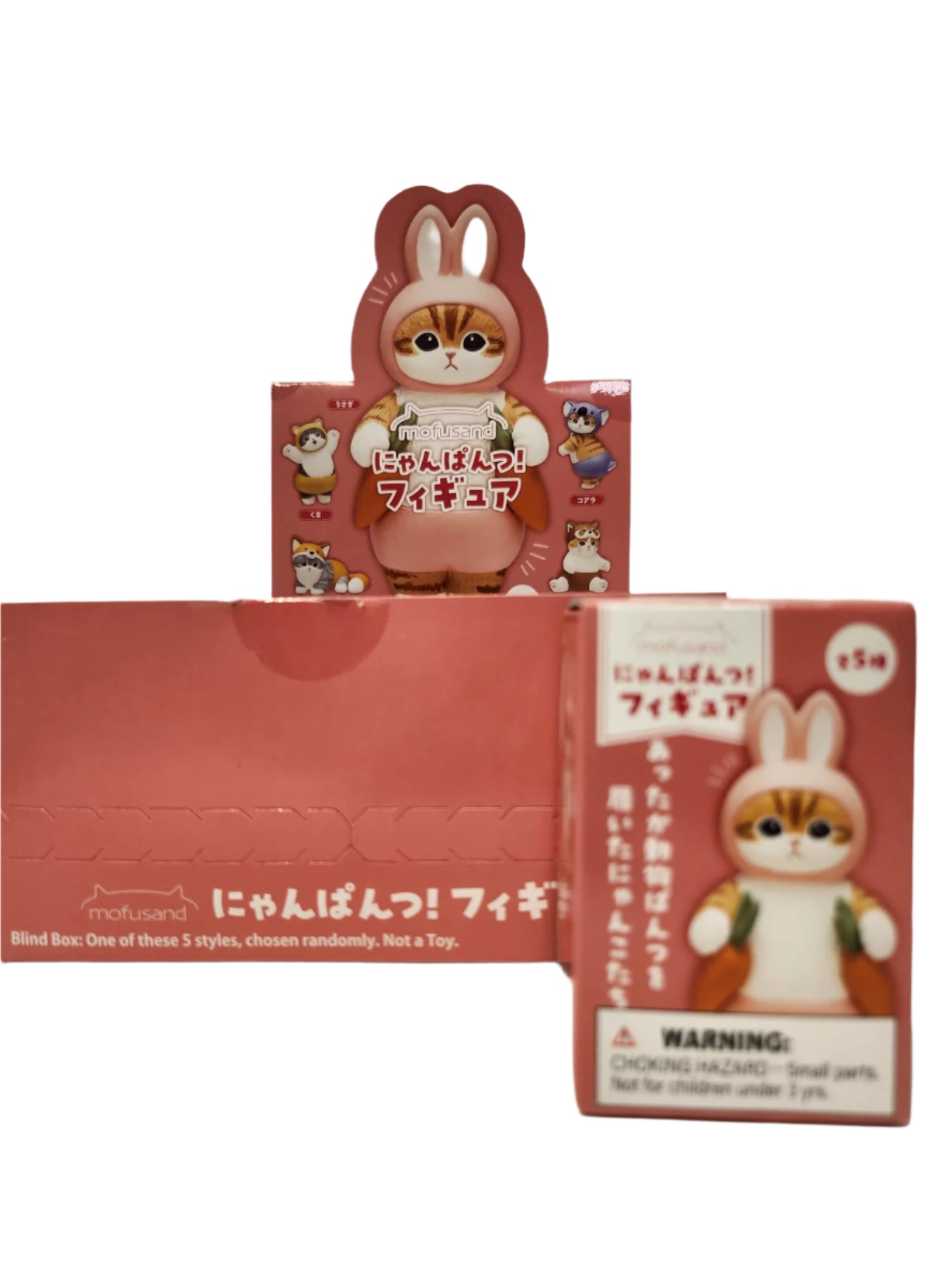 Unbox the cutest mystery with Mofusand Nyanpantsu! Each blind box features one of five adorable cats dressed in animal costumes—Rabbits, Koalas, Bears, and more!
